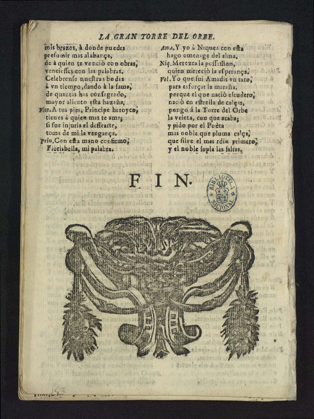 [final:] que ſilve el mas rdin primero, / y el noble ſupla las faltas. / FIN. / [taco]