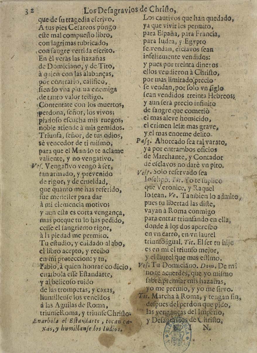 [final:] las venganças del Imperio, / y Deʃagravios de Chriʃto. / FIN.