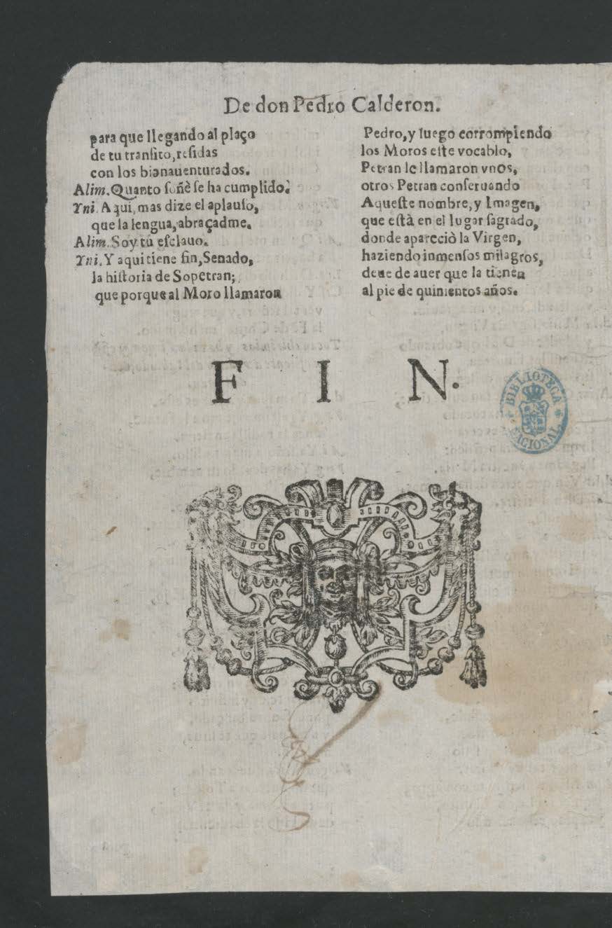 [final:] deue de auer que la tienen / al pie de quinientos años. / FIN. / [taco]