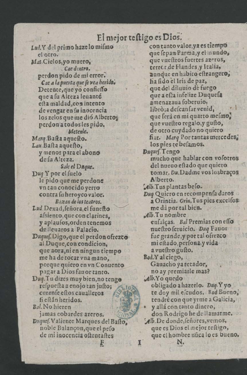 [final:] que es Dios el mejor teſtigo, / que el hombre nũca lo es bueno. / FIN.