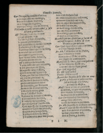 4º; A-D⁴, E¹; sin pp. ni ff. Tit: Comedia Famoſa, / El Diablo Predicador.