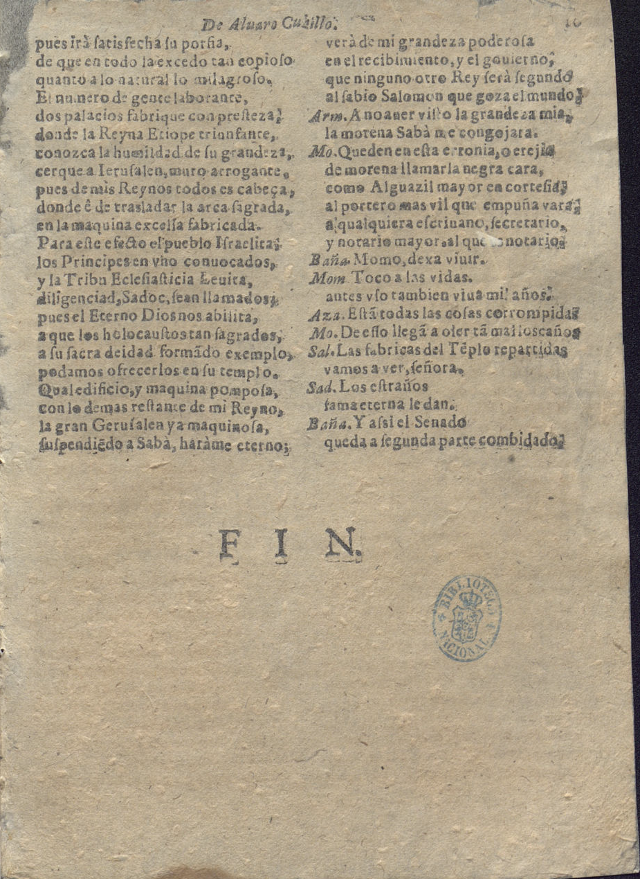 [final:] Baña. Y aʃsi el Senado / queda a ʃegunda parte combidado. / FIN.