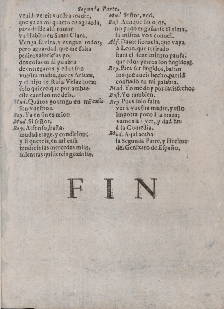 [final:] Aquí acaba / la Segunda Parte, y Hechos / del Genizaro de Eʃpaño. / FIN