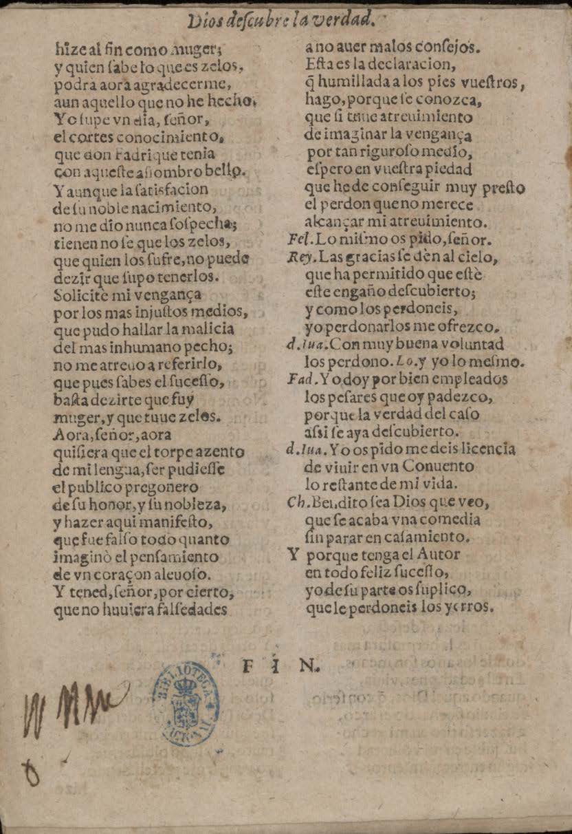 [Final:] yo de ʃu parte os ʃuplico, / que le perdoneis los yerros. / FIN.