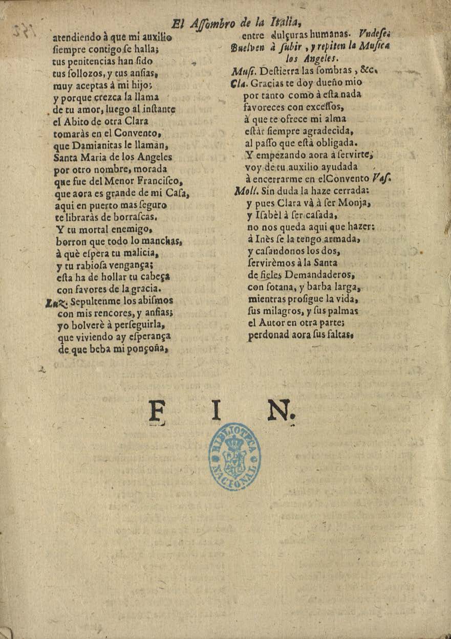 [final:] el Autor en otra parte; / perdonad aora ʃus faltas. / FIN.