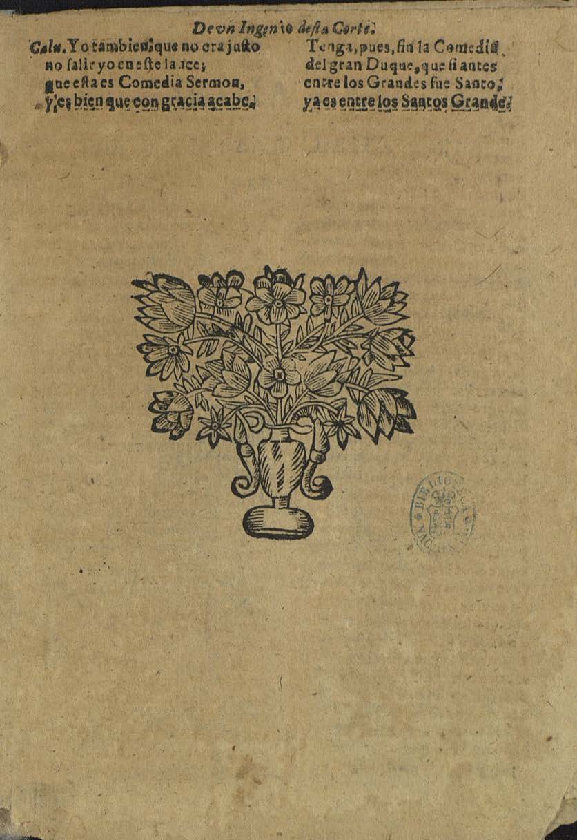 [Final.:] Entre los Grandes fue Santo, / ya es entre los Santos Grande. / [adorno floral xilográfico] /